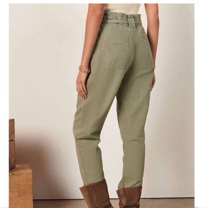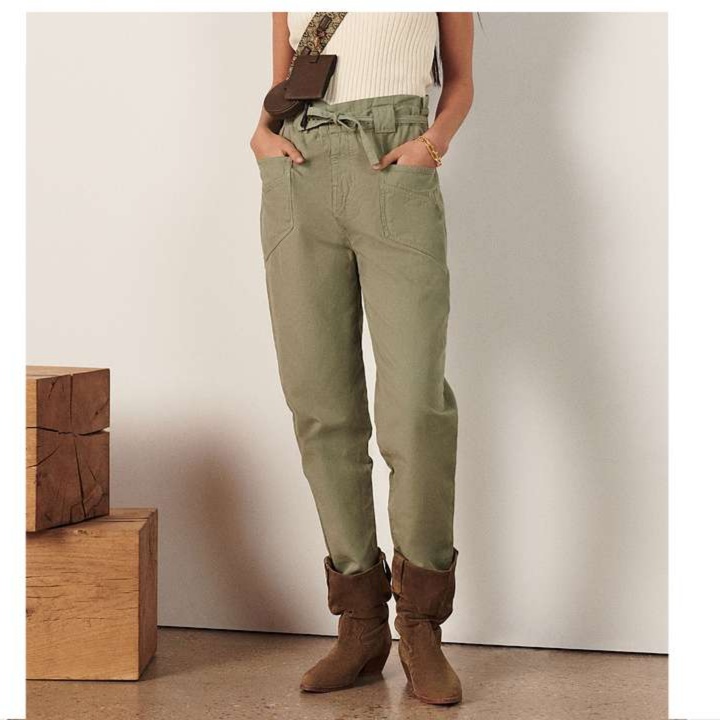 洗練された美シルエットのチノパン。ストレートなデザインが脚長効果を演出し、スタイルアップを実現。ウエストリボンがカジュアルなアクセントとなり、全体に上品な印象を与えます。大人のためのスタイリッシュな一着で、さまざまなシーンに対応可能。お洒落を楽しむための必須アイテムです。