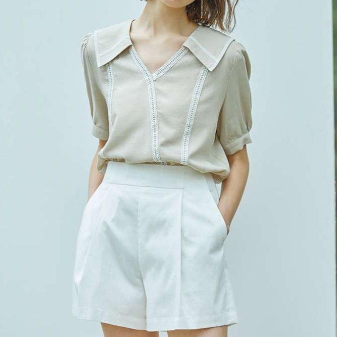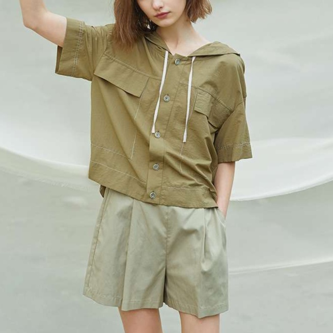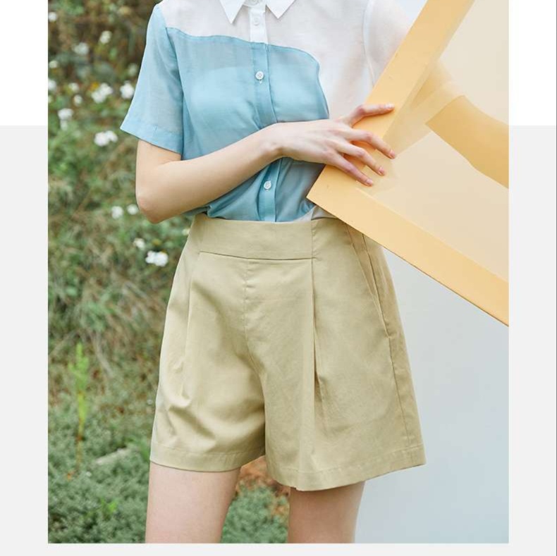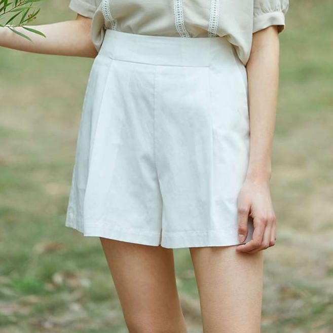 しなやかな生地感のチノパンを膝上丈のショートパンツに仕立てました。ウエストのタックデザインと、すっきりとしたストレートシルエットが女性らしい印象を演出します。上品な佇まいで、オフィスカジュアルにも活躍する一着です。