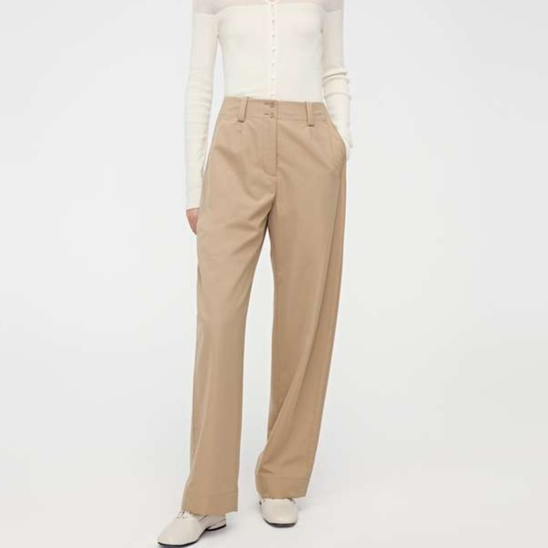上質な生地感が魅力のチノパン。ストレートシルエットが脚を美しく引き立て、どんなスタイルにもマッチするアイテム。ウエストタックにより立体感をプラスし、カジュアルからビジネスシーンまで幅広く活躍します。シンプルながらも洗練されたデザインで、毎日のコーディネートに欠かせない存在となることでしょう。